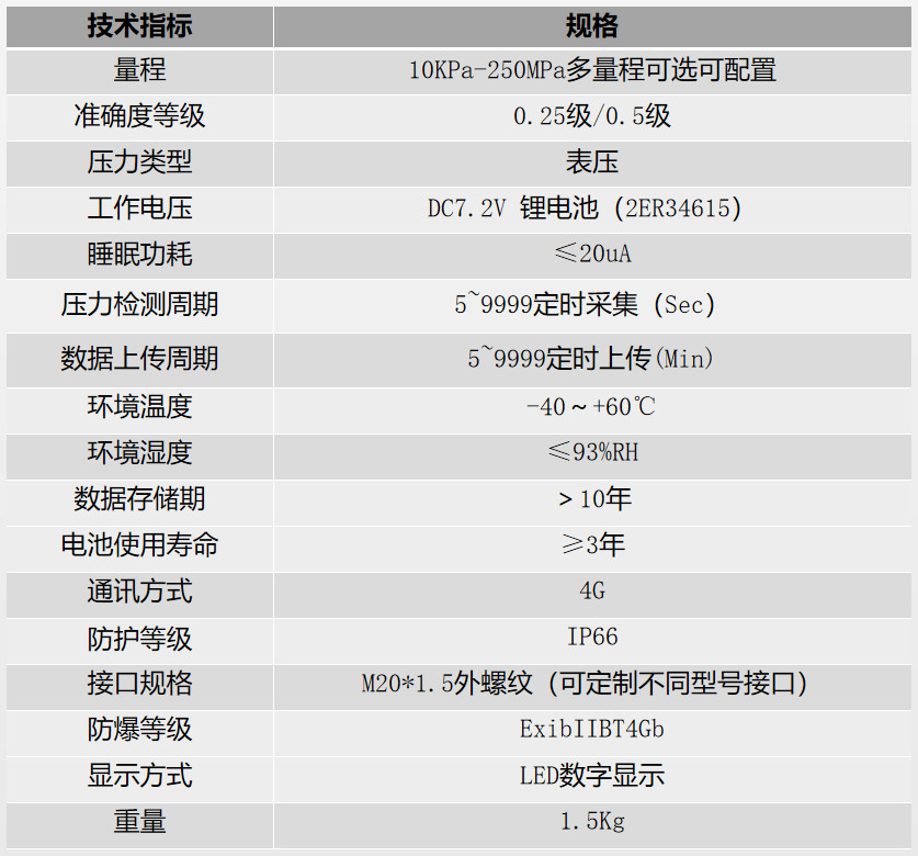 CYZD-YL系列無線智能壓力監測終端(以下簡稱為壓力監測終端)實現了氣體、液體壓力監測的自動化,相比人工巡檢方式實時性強,可靠性高,完善和提升整個城市燃氣管網、油田管網泄漏的預警能力,降低了泄漏事故造成的危害程度。產品采用物聯網技術與無線遠傳技術,進行了低功耗設計,使用電池供電。可對管道中的氣體壓力、環境溫度等進行實時監測,對設備自身電池電量、傳感器等狀態進行自檢,并將監測數據通過4G網絡回傳至數據監控中心平臺,方便監控中心人員監控每個終端設備工作狀態,實現安全隱患的全天候全時段監測、數據上報、即時報警等功能,具有良好的重復性和抗溫濕度干擾性、使用壽命長、操作方便等優點。